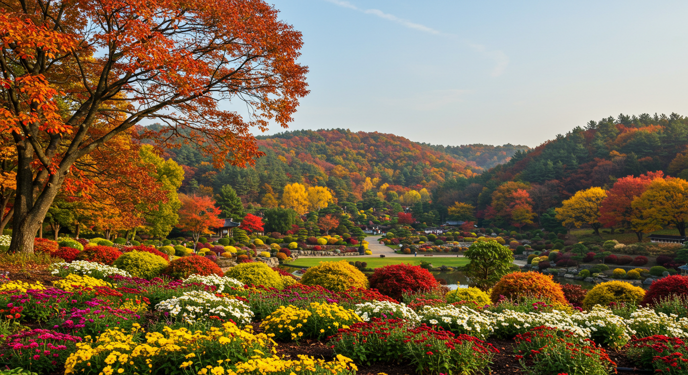 아침고요수목원은 가을이면 단풍과 국화꽃으로 물든 정원이 장관이에요. 테마별 정원마다 다른 분위기를 느낄 수 있고, 가족·연인 모두에게 인기 있는 나들이 장소예요.
