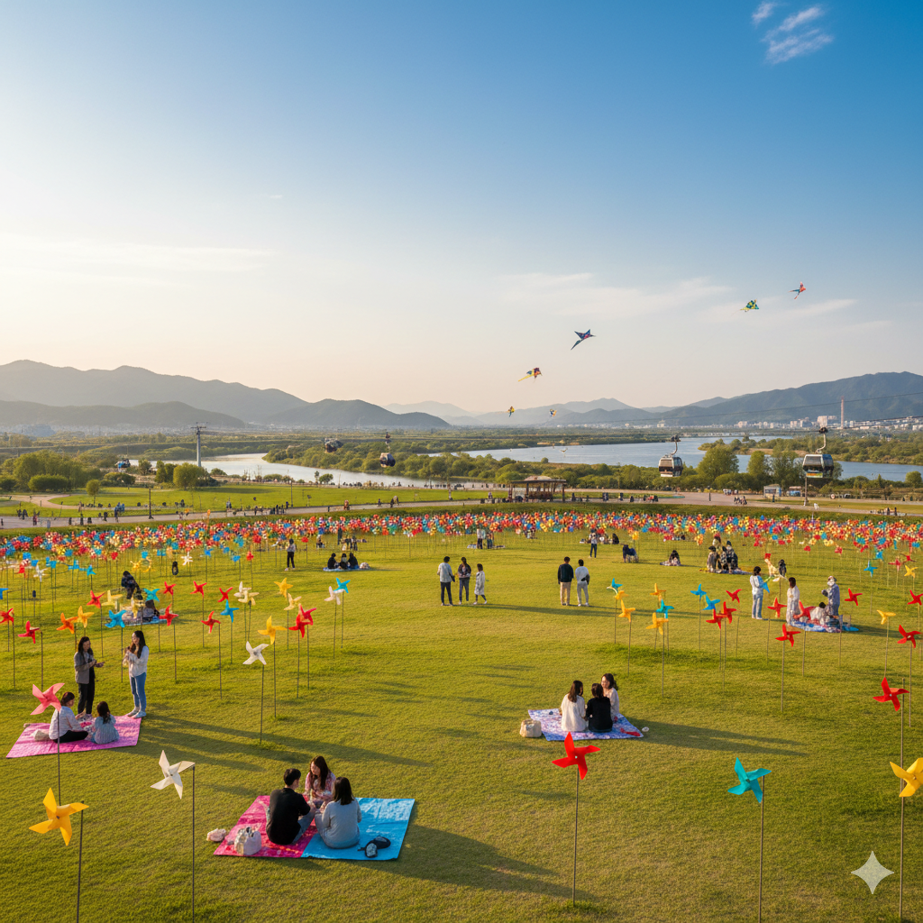 탁 트인 공간에서 자유로움을 만끽하고 싶다면 파주 임진각 평화누리공원을 추천해요! 수천 개의 바람개비가 돌아가는 '바람의 언덕'은 평화로운 분위기를 자아내며 마음을 차분하게 해줘요. 넓은 잔디밭에 돗자리를 펴고 앉아 봄바람을 맞으며 하늘을 나는 연들을 구경하는 재미가 가득해요. 최근에는 임진강을 가로지르는 평화 케이블카가 생겨서 DMZ의 경관을 하늘 위에서 감상할 수도 있어요. 역사적인 의미와 자연의 편안함이 공존하는 곳이라 남녀노소 모두에게 사랑받는 장소에요.