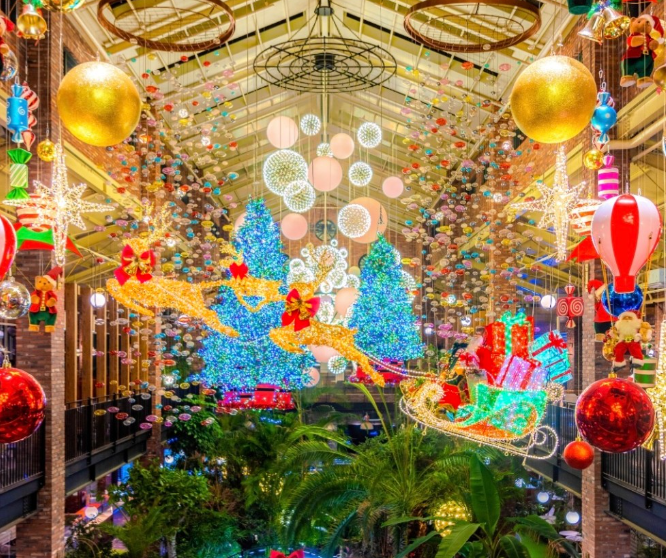 대형 식물원 같은 온실 구조로 꾸며진 카페 겸 레스토랑이에요.겨울이 되면 식물 사이로 크리스마스 장식이 더해져 실제 크리스마스 빌리지 같은 분위기가 연출돼요.