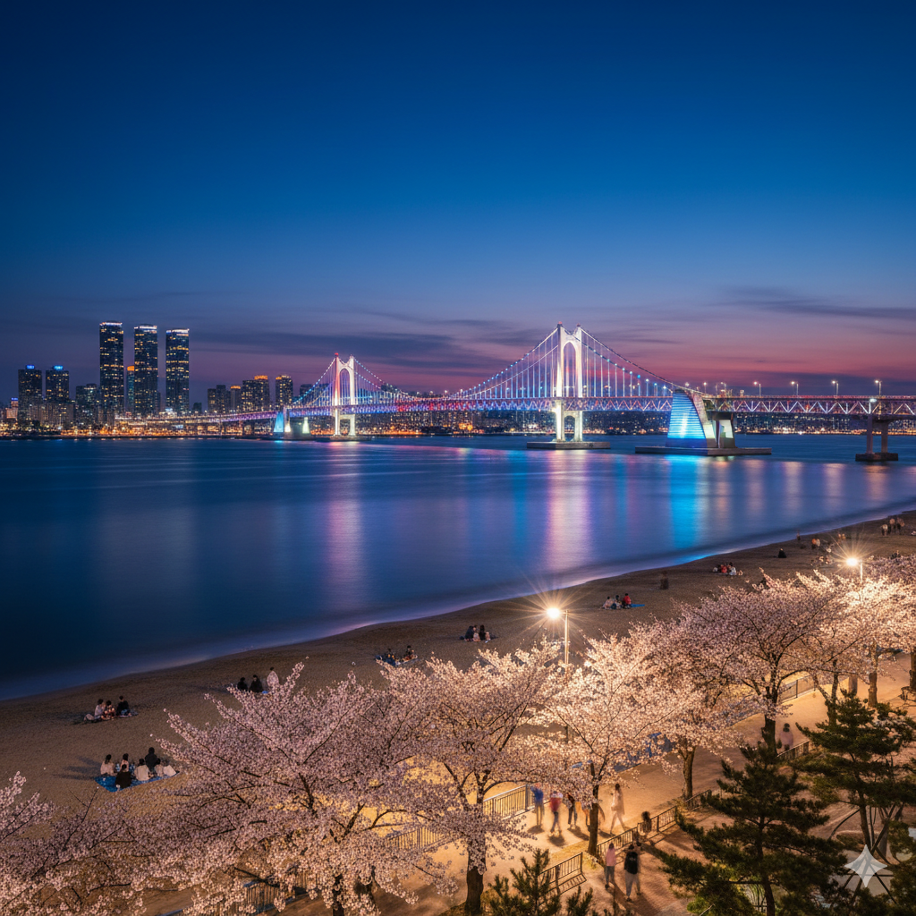 밤바다의 낭만을 즐기고 싶다면 광안리해수욕장이 빠질 수 없어요! 웅장한 광안대교의 LED 조명이 시시각각 변하며 바다를 물들이는 모습은 봄밤의 감성을 자극하기에 충분해요. 해변 산책로를 따라 조성된 화단에는 화사한 봄꽃들이 고개를 내밀어 나들이객을 반겨준답니다. 주말 저녁이면 펼쳐지는 드론 쇼나 버스킹 공연은 봄나들이의 재미를 한층 끌어올려 줘요. 모래사장에 앉아 시원한 음료를 마시며 파도 소리를 듣는 것만으로도 완벽한 봄 여행이 완성된답니다.