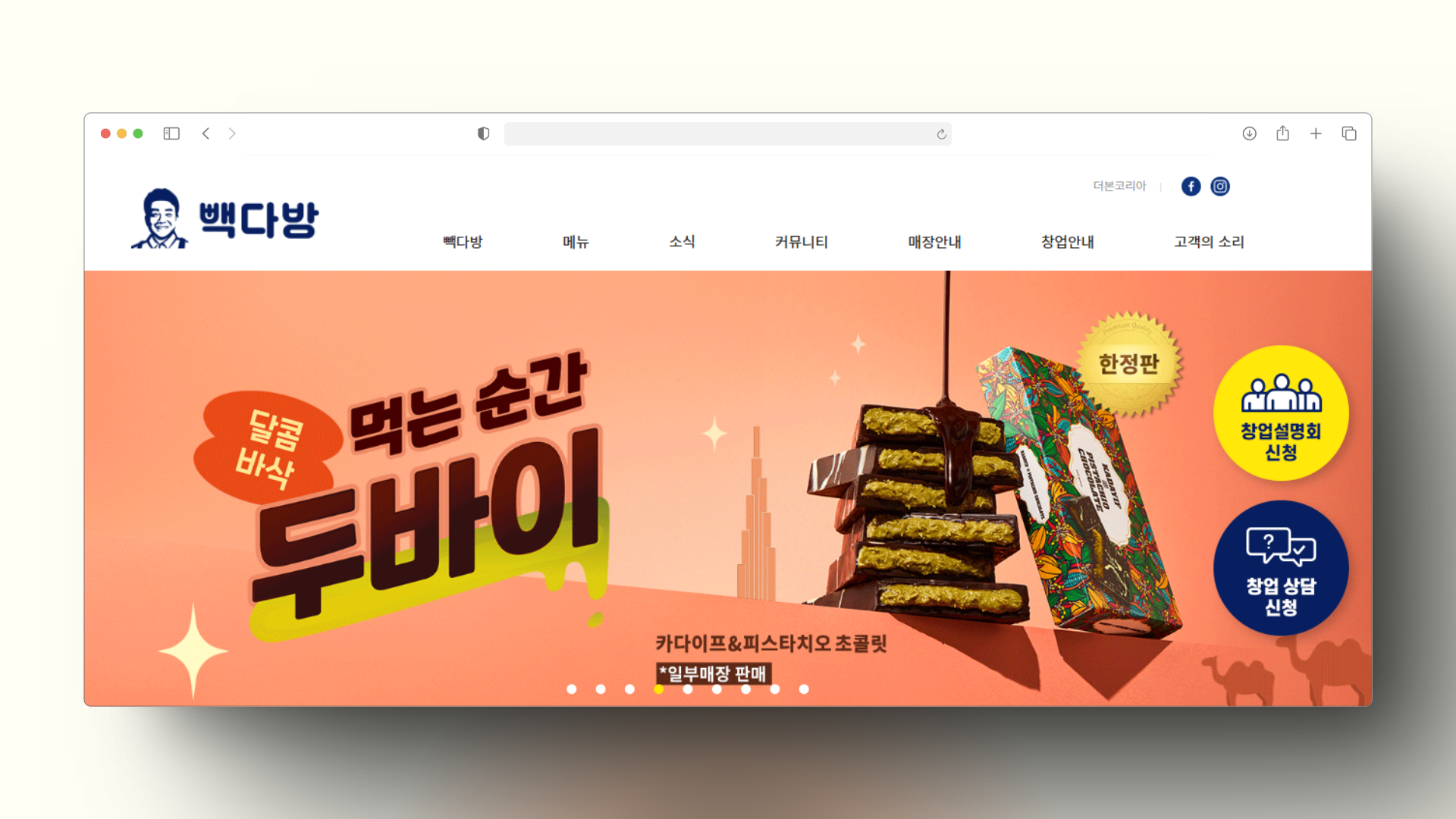 두바이 초콜릿은 빽다방의 대표적인 디저트 메뉴로, 커피와 함께 즐기기 좋은 아이템이라고 할 수 있습니다. 특히 카페 분위기 속에서 여유롭게 즐기는 디저트는 다른 매장과는 또 다른 매력을 제공하고 있는데요 한정판매로 인기가 상승하고 있다고하니 다들 서둘러 구매하셔야 겠습니다.