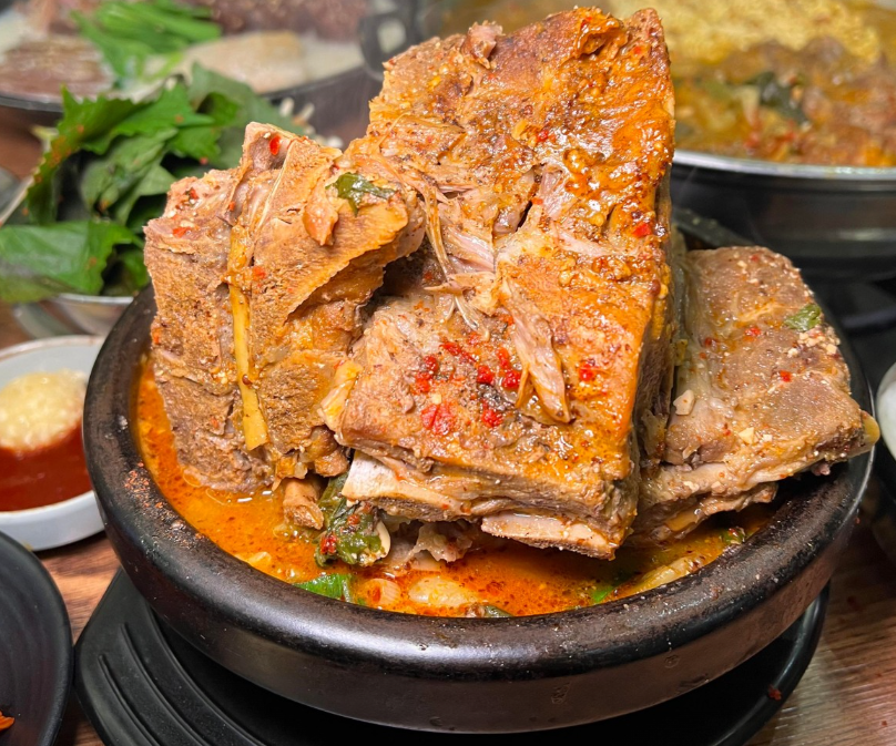 이곳 뼈해장국의 가장 큰 매력 중 하나는 바로 국물 맛이에요. 기본적으로 진한 사골 육수를 사용하여 깊고 구수한 맛이 느껴져요. 여기에 다진 마늘이 추가되어 풍미를 더하고, 과하지 않으면서도 은은하게 올라오는 얼큰함이 특징이랍니다! 많은 사람들이 칭찬하는 점은, 조미료의 강하고 인위적인 맛이 아니라 재료 본연의 맛과 정성으로 우려낸 '깊고 깔끔한' 맛이라는 거예요. 국물을 먹고 나도 속이 더부룩하지 않고 편안하다고 알려져 있어요. 개운하면서도 든든한 국물 맛에 자꾸만 숟가락이 간다고 합니다.