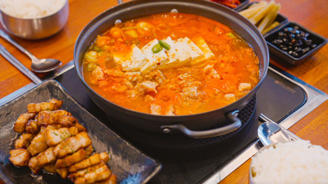 오직 김치찌개에 집중하여 전문성을 높인 메뉴 구성 역시 돋보입니다. 메인 메뉴로 김치찌개가 제공되며, 밥과 기본 반찬은 물론 추가로 더 드시고 싶으실 경우 셀프바에서 자유롭게 리필 가능합니다. 특히, 매일 신선한 재료를 사용해 끓여내는 김치찌개는 고소한 돼지고기와 숙성된 김치가 조화를 이루어 담백함과 깊은 맛을 동시에 느낄 수 있습니다.