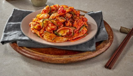 닭 요리를 먹으며 깔끔하게 곁들일 수 있는 초무침도 제공돼요. 새콤달콤한 맛이 메인 요리와 잘 어우러져 식사의 즐거움을 배가시켜요. - 호박식혜 디저트