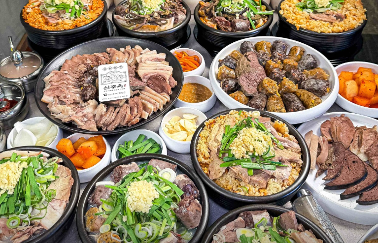 신주옥 오산점의 순댓국이 특별한 이유는 바로 돼지고기의 신선함에서 시작돼요. 이곳에서는 국내산 돼지고기를 직접 도축해 하루에 4번이나 삶아내는 과정을 거쳐요. 갓 삶아낸 돼지고기는 담백하면서도 쫄깃하고, 육즙 가득한 풍미가 순댓국 국물에 자연스럽게 스며들어 깊고 진한 맛을 느끼게 해준답니다.