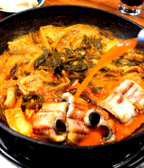 이 요리는 신선한 장어와 푹 익은 파김치, 그리고 비법 소스가 만나 자작하게 졸여내지는 방식이에요. 장어의 부드러운 식감과 파김치의 새콤달콤하면서도 알싸한 맛, 그리고 깊은 감칠맛의 소스가 환상적인 조화를 이루는 것이 특징이랍니다. 방송에서 소개된 것처럼, 파김치가 장어와 만나면 장어 특유의 기름진 느낌을 깔끔하게 잡아주면서 풍미를 더욱 끌어올리는 역할을 한다고 해요. 보기만 해도 입맛을 다시게 하는 먹음직스러운 비주얼은 물론, 실제로 맛봤을 때의 감동이 더 크다고 하네요.