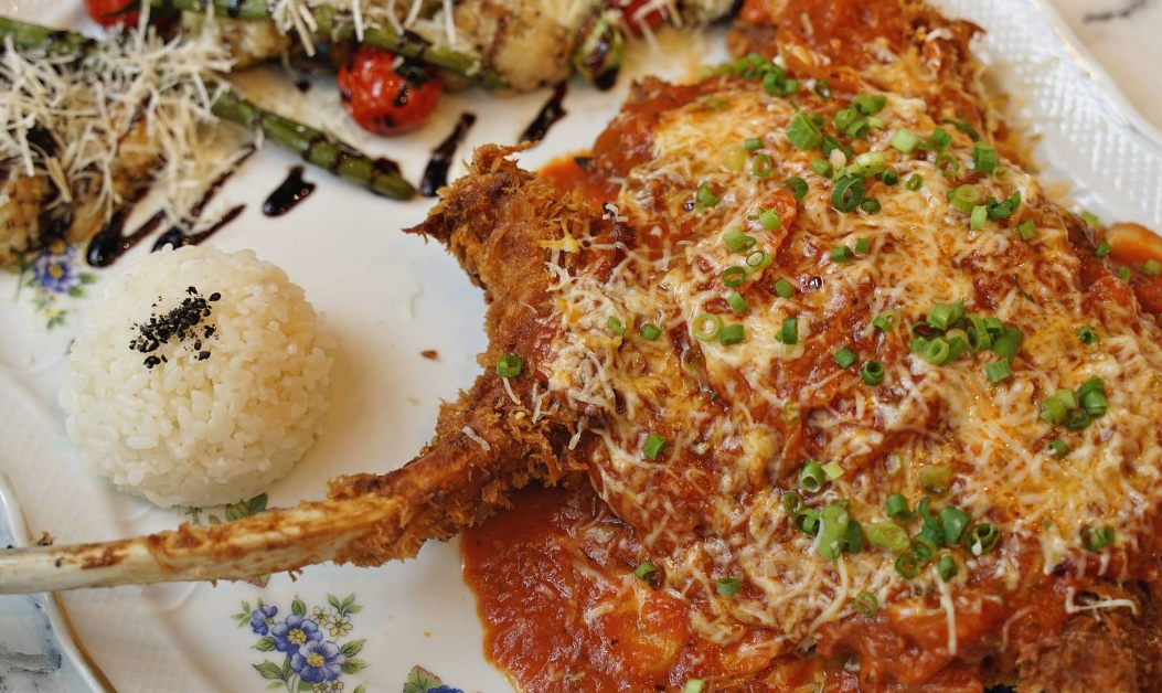 이곳의 시그니처라고 할 수 있는 돈마호크 커틀렛은 도끼살 뼈등심을 통째로 사용해 압도적인 크기를 자랑해요. 매콤토마토 소스가 듬뿍 올라간 버전은 눈꽃 치즈와 각종 야채 가니쉬가 어우러져 화려한 색감을 뽐내고 있어요. 겉은 바삭하고 속은 촉촉한 고기의 질감이 매콤한 양념과 만나 자칫 느낄 수 있는 느끼함을 깔끔하게 잡아줘요. 부드러운 맛을 선호한다면 데미 소스가 올라간 버전을 선택해 풍성한 풍미를 즐길 수 있으며, 큼지막한 고기를 썰어 먹는 재미까지 쏠쏠해서 남녀노소 모두에게 사랑받는 메뉴예요.