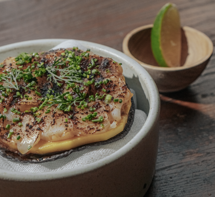 - 관자 토스타다 (16,000원): 북해도 관자를 큐어링해 빈 퓨레와 파파야 위에 올린 특별한 전채요리