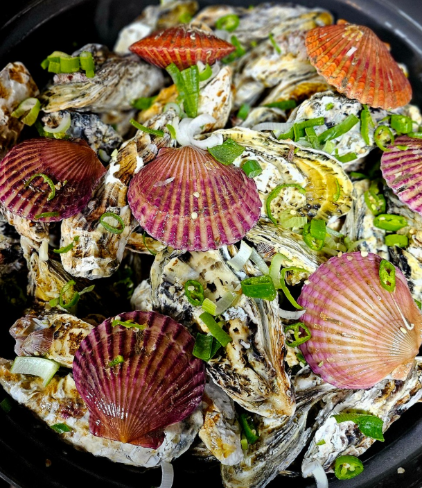 대표 메뉴는 단연 조개찜과 조개구이예요. 조개찜은 매콤하면서도 시원한 국물 맛이 일품이라 술안주로도 좋고, 밥반찬으로도 손색이 없어요. 조개구이는 불향을 입힌 조개살이 탱글탱글하게 씹히며 고소함이 퍼져서 별미로 꼽혀요.특히 조개찜은 다양한 해산물이 함께 들어가 있어 먹는 재미가 커요. 홍합, 가리비, 키조개 등 신선한 조개가 가득 담겨 나오고, 그 위에 칼칼한 양념 국물이 어우러져 진한 맛을 완성해요.