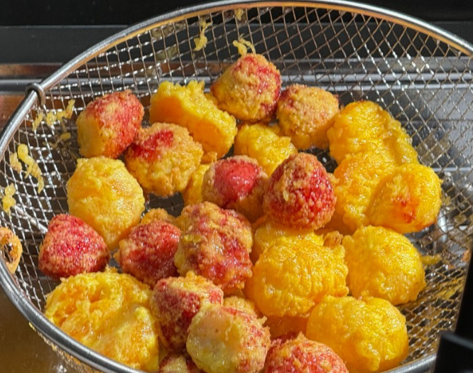 튀김 대행 서비스 외에도 튀김방앗간 튀김박스는 직접 튀긴 다양한 요리를 판매하고 있어요. 대표적인 메뉴는 칠게순살후라이드 치킨, 음파치킨, 돼지양념갈비튀김, 그리고 칠게튀김입니다.
