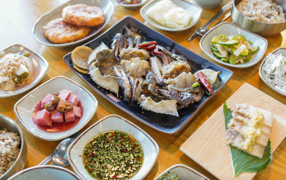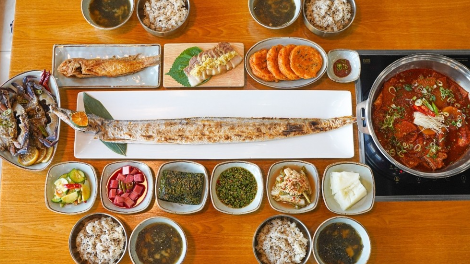 - 순살갈치조림, 새우장, 톳밥, 들깨미역국, 보리김치, 계절 반찬 8종으로 구성된 메뉴예요. 단 40,000원의 가격으로 맛과 푸짐함을 모두 느낄 수 있어요.