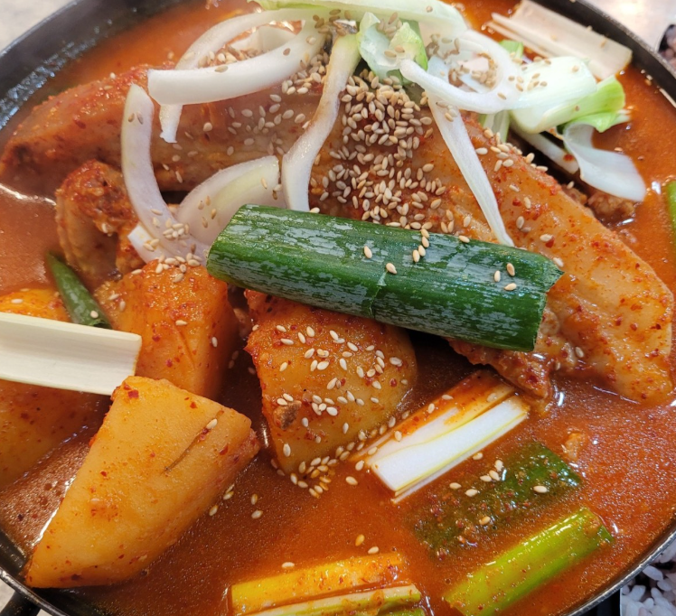 - 감자와 김치, 고기가 함께 익어 부드러운 식감과 풍성한 맛을 느낄 수 있어요.