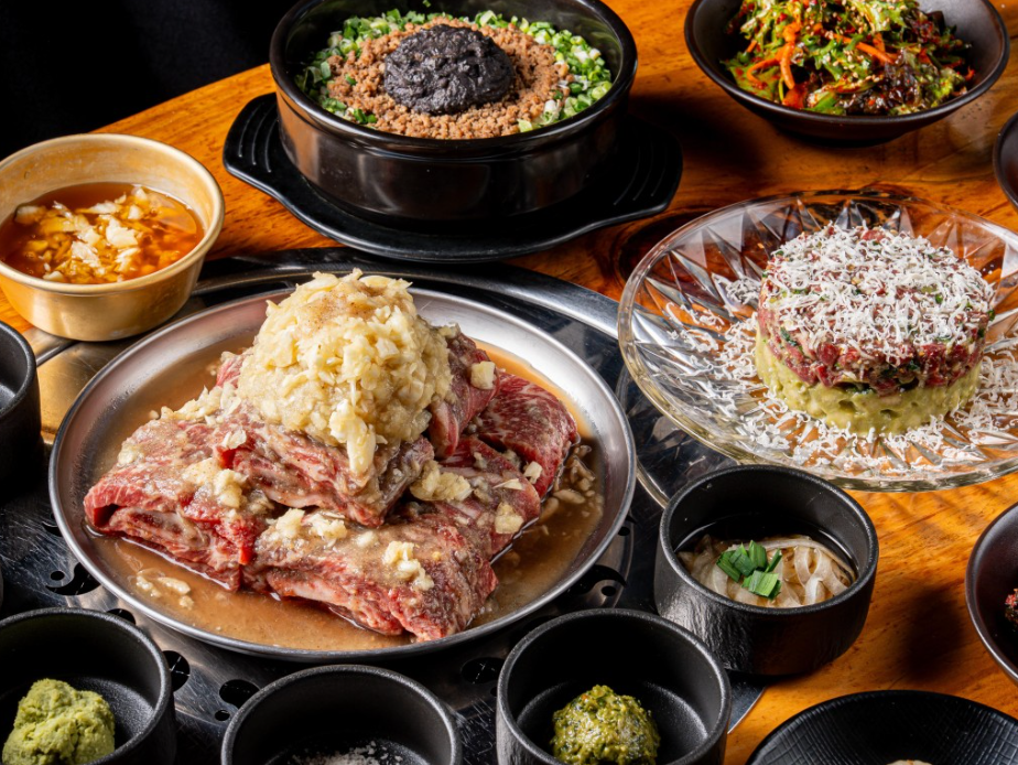 갈비뿐만 아니라 1++ 등급의 투뿔 등심 역시 최상의 퀄리티를 유지하며 미식가들의 입맛을 사로잡고 있어요. 마블링이 꽃처럼 핀 등심은 육질이 연하고 담백하여 고기 본연의 맛을 즐기기에 부족함이 없어요. 특히 이곳의 별미로 꼽히는 아보카도 육회는 부드러운 아보카도와 신선한 소고기가 만나 이색적인 맛의 향연을 선사해요. 아보카도의 크리미한 질감이 육회의 쫄깃함과 만나 풍요로운 식감을 완성하며 양념의 밸런스가 좋아 부담 없이 즐기기 좋아요. 전통적인 한식 메뉴에 현대적인 식재료를 접목한 시도는 식사의 즐거움을 한층 높여주며 눈과 입을 동시에 만족시키는 화려한 상차림을 완성해 줘요.
