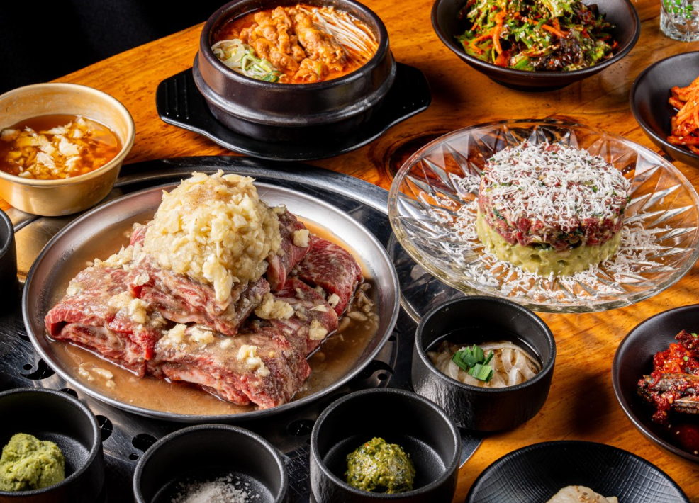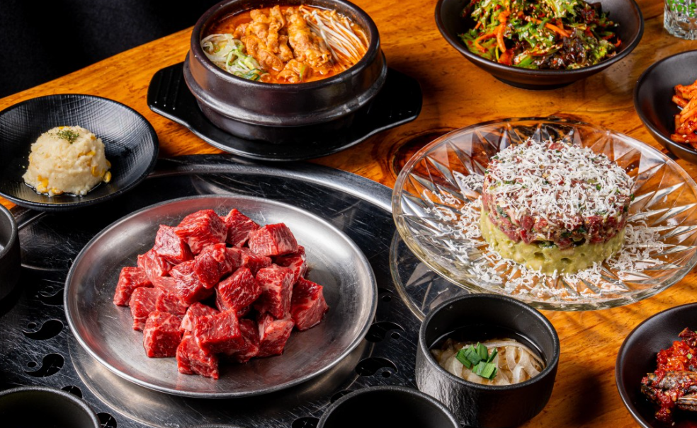 갈비뿐만 아니라 1++ 등급의 투뿔 등심 역시 최상의 퀄리티를 유지하며 미식가들의 입맛을 사로잡고 있어요. 마블링이 꽃처럼 핀 등심은 육질이 연하고 담백하여 고기 본연의 맛을 즐기기에 부족함이 없어요. 특히 이곳의 별미로 꼽히는 아보카도 육회는 부드러운 아보카도와 신선한 소고기가 만나 이색적인 맛의 향연을 선사해요. 아보카도의 크리미한 질감이 육회의 쫄깃함과 만나 풍요로운 식감을 완성하며 양념의 밸런스가 좋아 부담 없이 즐기기 좋아요. 전통적인 한식 메뉴에 현대적인 식재료를 접목한 시도는 식사의 즐거움을 한층 높여주며 눈과 입을 동시에 만족시키는 화려한 상차림을 완성해 줘요.