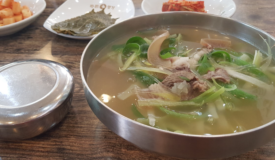 맑은육개장은 채수 베이스에 대파가 듬뿍 들어가 깔끔한 맛이 일품이에요. 국물이 담백하고 깨끗해서 아침 식사로도 인기가 많죠. 고기와 파를 깻잎에 싸먹으면 그 맛이 배가 된다고 해요.