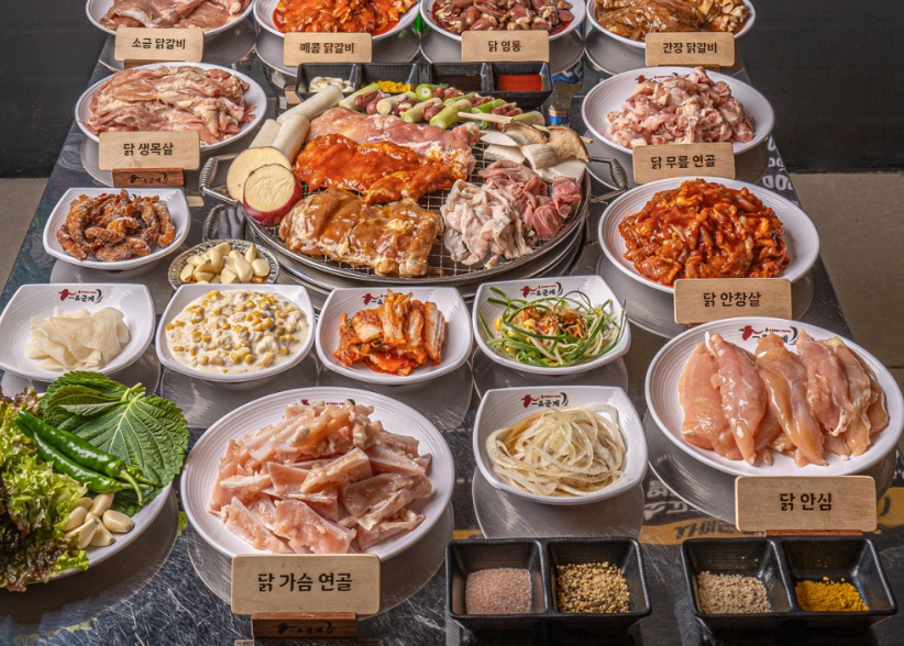 일품군계 오산 숯불닭갈비 무한리필 매장이 사랑받는 근본적인 이유는 바로 원재료의 신선함에 있어요. 냉동 닭이 아닌 100% 국내산 최상급 냉장 닭다리 살만을 고집하기 때문에 육질이 굉장히 부드럽고 촉촉했어요. 참숯 위에서 구워지는 닭갈비는 겉은 바삭하면서도 속에는 육즙이 꽉 차 있어 씹을수록 고소한 맛이 일품이었어요.