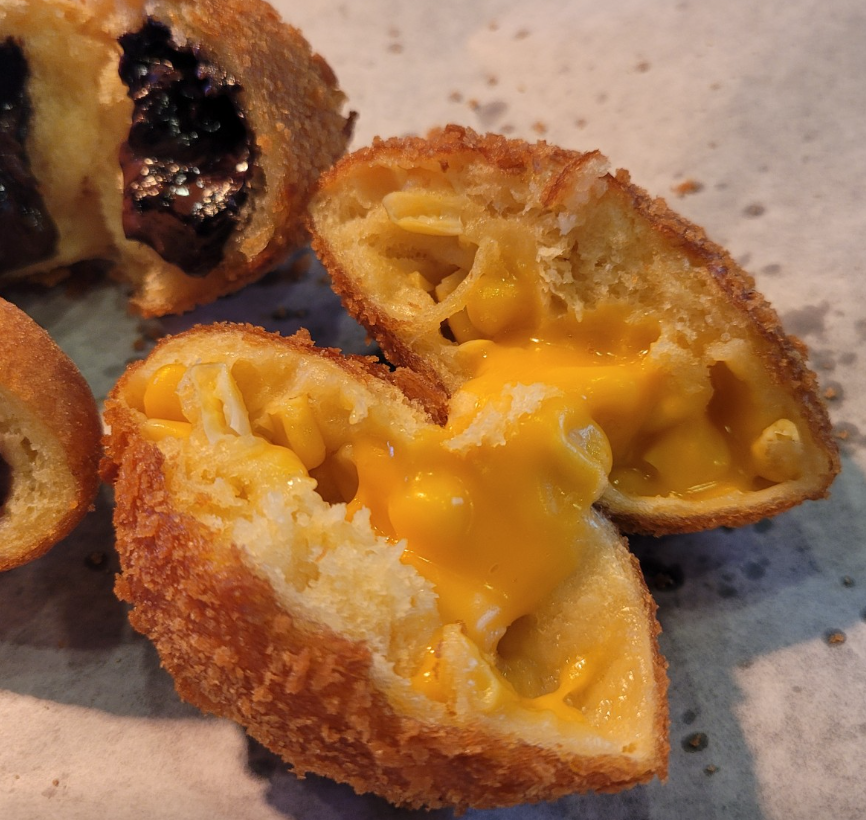 튀긴 직후 설탕을 묻히는 타이밍도 중요해요 , 너무 뜨거우면 설탕이 녹고, 너무 식으면 달라붙지 않기 때문에 정확한 온도 조절이 달인의 손끝에서 완성돼요.도넛류도 인기인데, 특히 찹쌀 꿀도넛은 깨와 꿀, 호떡소가 들어 있어 달콤하면서 고소한 풍미를 동시에 느낄 수 있어요.한입 베어 물면 안에서 따뜻한 단팥이나 꿀이 부드럽게 흘러나와 입안 가득 행복함이 퍼진다고 해요.