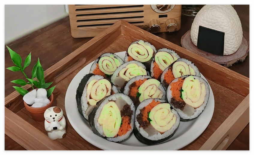 늘솜김밥은 숯불 제육 김밥으로 유명해요. 이곳의 달인은 숯불에 직접 구운 제육으로 김밥을 만듭니다. 불 맛이 살아있는 제육은 김밥 속 다른 재료들과 어우러져 깊은 맛을 내죠.