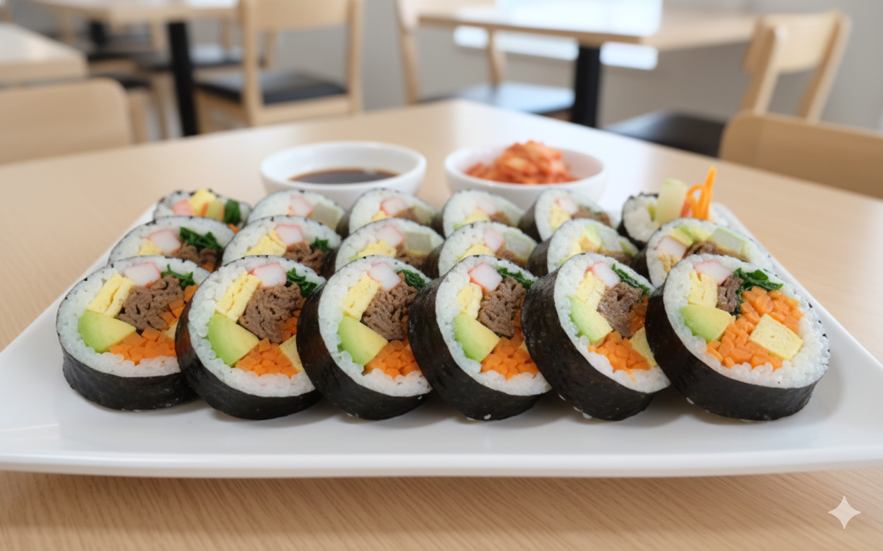 기본이 되는 박고지 유부김밥은 볶은 유부와 박고지의 조화로 고기 맛을 내는 가성비 최고의 메뉴예요! 후토마끼나 아보카도가 들어간 프리미엄 라인은 건강과 맛을 동시에 챙기고 싶은 분들에게 강력히 추천드려요. 속 재료를 아끼지 않고 꽉꽉 채워 넣은 덕분에 김밥 한 줄이 묵직한 무게감을 자랑한답니다. 정성스럽게 졸인 박고지의 쫄깃한 식감은 오직 이곳에서만 경험할 수 있는 특별한 맛의 포인트가 되어줄 거예요.