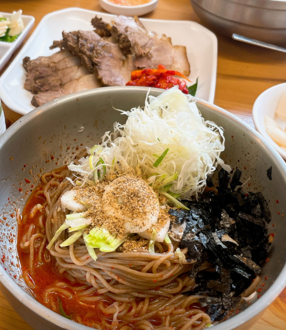 - 비빔막국수: 들기름을 살짝 곁들여 고소함을 더한 비빔막국수는 쫄깃한 메밀 면발과 강렬한 양념이 어우러진 맛이 특징이에요. 매콤하면서도 자극적이지 않아 계속 먹고 싶어지는 맛이에요.