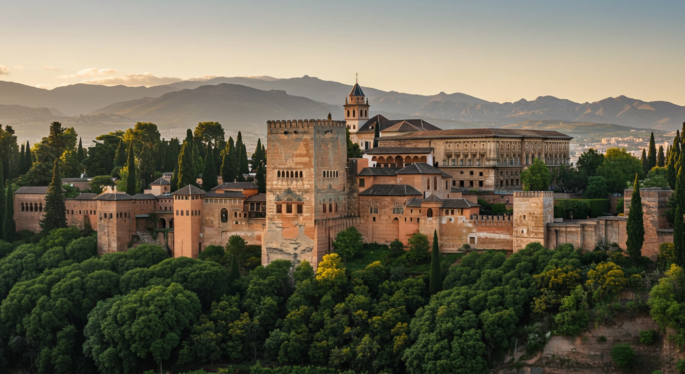 알함브라 궁전은 스페인 그라나다에 위치한 궁전으로, 무슬림 건축 미학의 절정을 보여주는 걸작으로 여겨집니다.