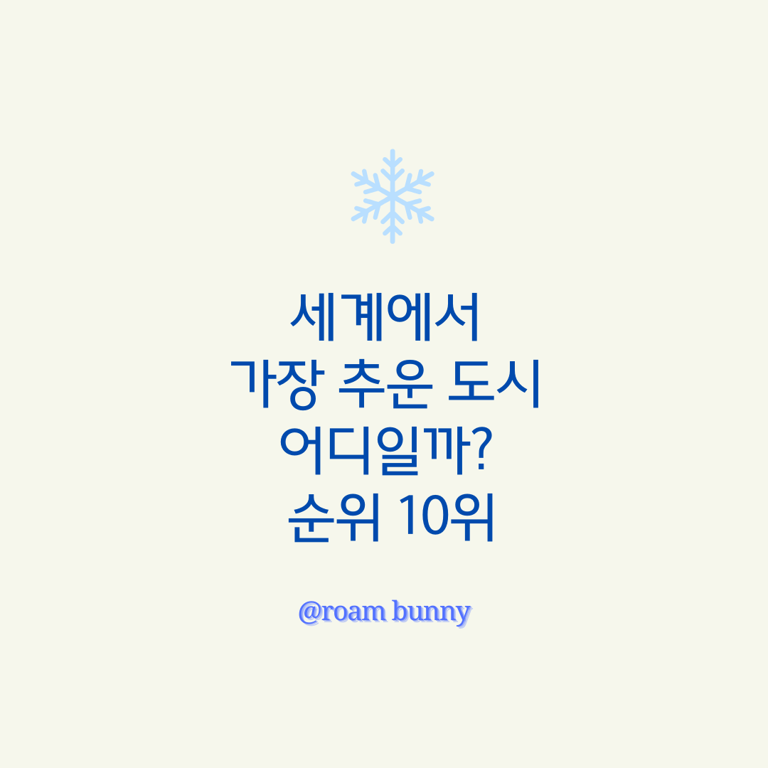지구상에는 다양한 기후 조건을 가진 도시들이 존재합니다. 그 중에서도 극심한 추위로 알려진 도시들이 있는데, 이들은 일년 중 상당 기간 동안 영하의 기온을 유지하며, 겨울철에는 더욱 혹독한 추위를 경험합니다. 이러한 도시들은 주로 고위도 지역에 위치하고 있으며, 독특한 지리적 특성을 가지고 있습니다.세계에서 가장 추운 도시 어디일까? 궁굼했었는데  1위부터 10위까지 알아보겠습니다.