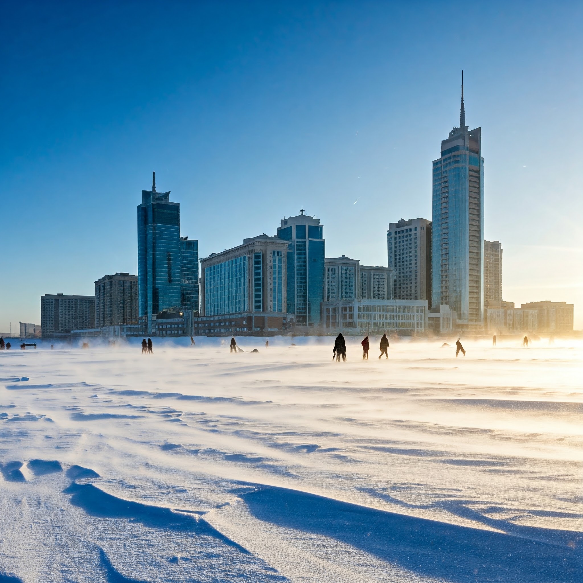 - 카자흐스탄의 수도로, 건조한 대륙성 기후를 가지고 있습니다. 1월 평균 기온은 영하 15도 이하이며, 최저 기온은 영하 52도까지 기록되었습니다. 중앙아시아 초원 지대에 위치한 이 도시는 겨울철 강한 바람과 함께 극심한 추위를 경험합니다.