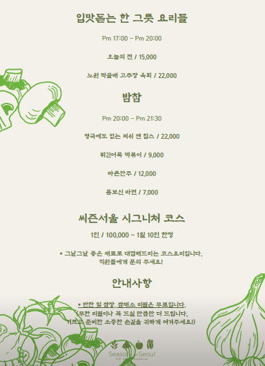 씨즌서울메뉴가격
