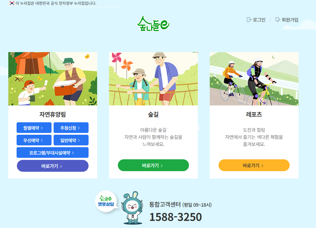 1. 숲나들e 숙박 예약 필수(www.foresttrip.go.kr)