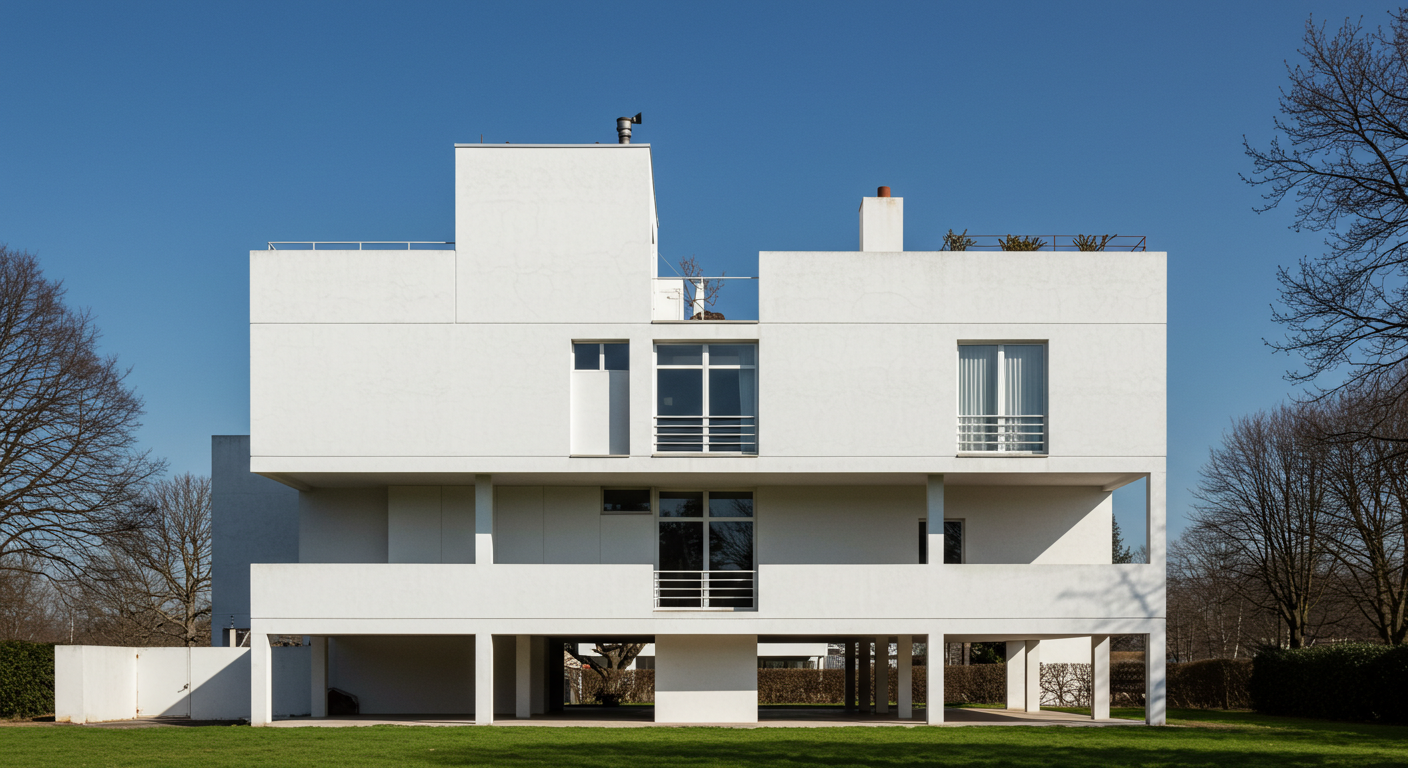 '집은 살기 위한 기계'라고 선언했던 현대 건축의 거장, 르 코르뷔지에. 그의 철학이 집약된 곳이 바로 파리 근교의 빌라 사보아입니다. 하얀색 상자 같은 이 집은 그의 '현대 건축 5원칙'을 완벽하게 구현했어요. 1층을 기둥(필로티)으로 들어 올려 지면을 자유롭게 활용하고, 옥상 정원을 만들어 자연을 끌어들이고, 자유로운 평면과 입면 구성으로 공간의 유연성을 확보하고, 가로로 긴 창을 내어 채광과 조망을 극대화했죠. 지금 보면 당연해 보이는 이런 요소들이 당시에는 엄청난 혁신이었답니다. 이 집은 단순한 주택을 넘어 현대 건축의 새로운 기준을 제시한 기념비적인 작품이에요. 하지만 너무 시대를 앞서간 탓인지, 초기에는 비가 새는 등 기능적인 문제도 꽤 있었다고 하네요.
