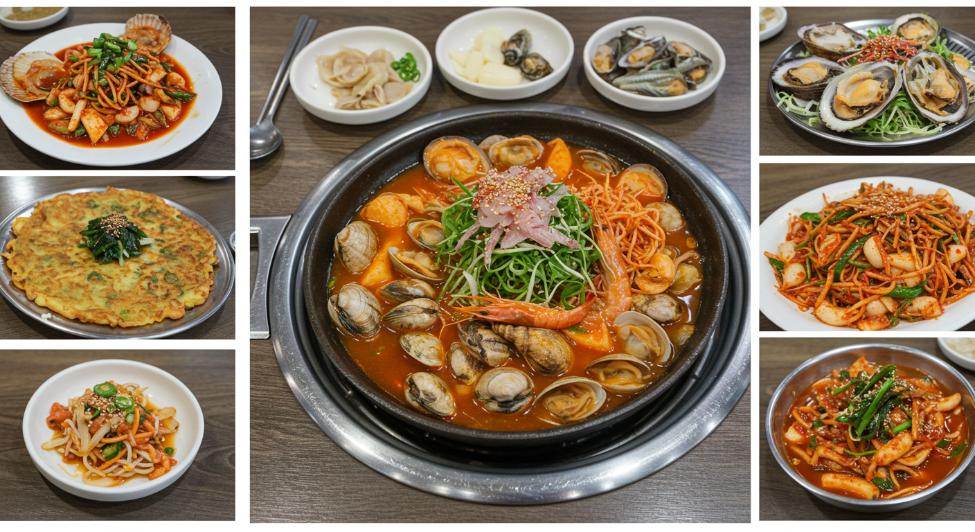 이곳에서 가장 인기 있는 메뉴는 단연 신선한 해산물 요리예요. 조개구이, 해물라면, 회무침 등 부산 바다의 싱싱함을 그대로 담은 다양한 음식들이 준비되어 있어요. 또한 해물파전, 어묵탕, 계절에 맞는 해산물, 숯불구이 등 포차 분위기를 제대로 살려주는 안주들도 빠질 수 없어요. 지역민들에게 사랑받는 몇몇 포장마차는 줄을 서서 기다릴 만큼 유명하고, 각 포차마다 조금씩 다른 별미를 맛볼 수 있어 미식가들에게도 추천할 만해요. 부산소주와 함께하는 해산물 요리 한 상은 영도포차촌만의 빼놓을 수 없는 즐거움이에요.