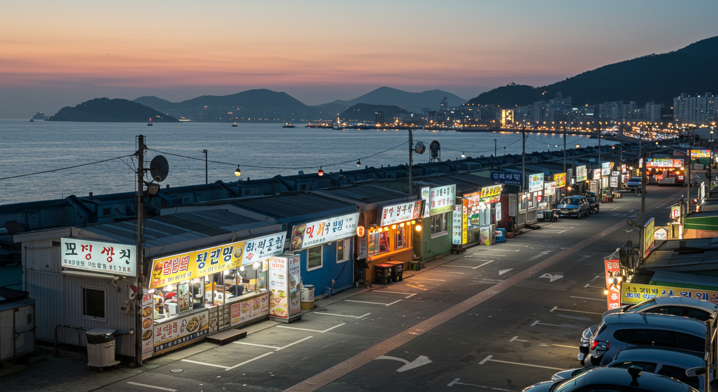 포장마차촌이 항구를 따라 길게 늘어서 있으니 방문 전 맛집 위치를 미리 확인하는 것이 좋아요.