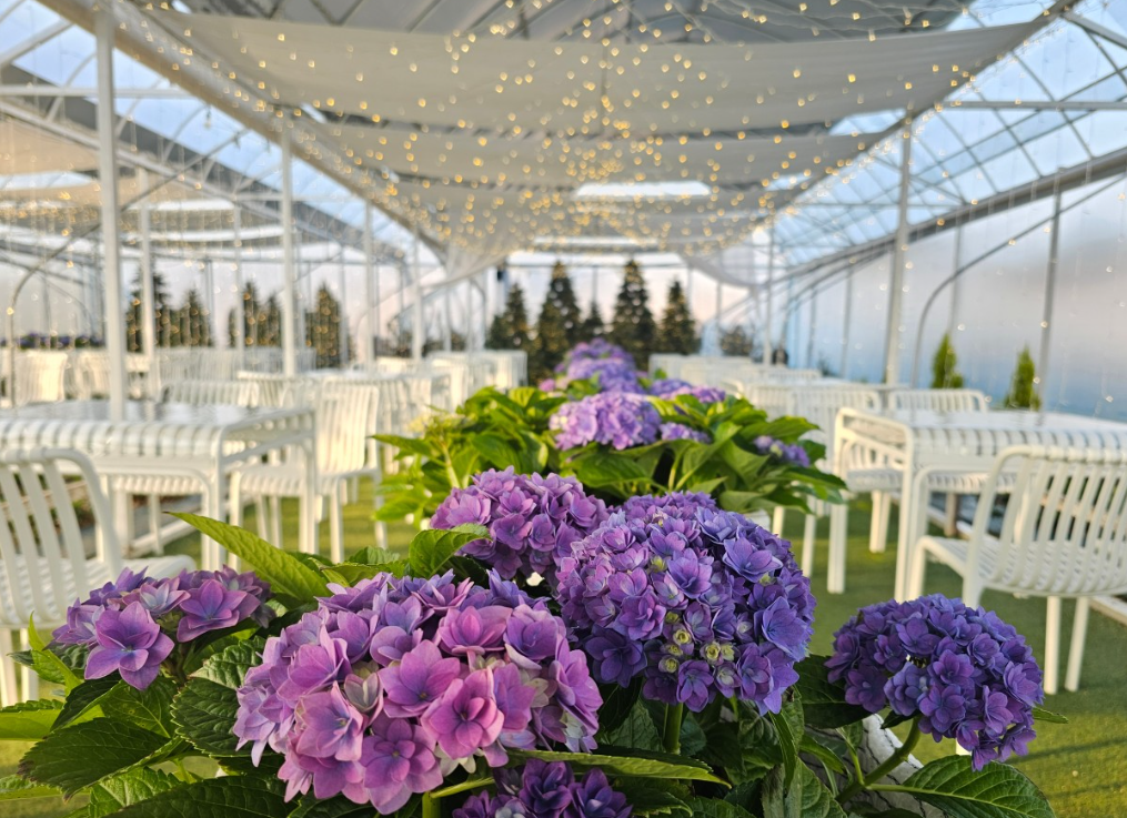 - 6월~8월: 유럽수국이 정원을 아름답게 물들여 여름의 청량함을 전해요.