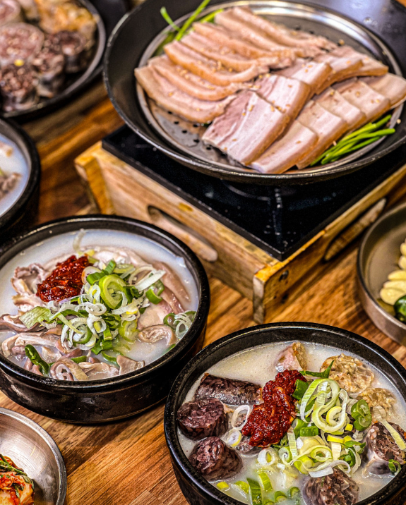 - 해장 전용 국밥 : 고기, 내장, 순대를 섞어 얼큰하게 즐기는 메뉴로 해장에 제격이에요.