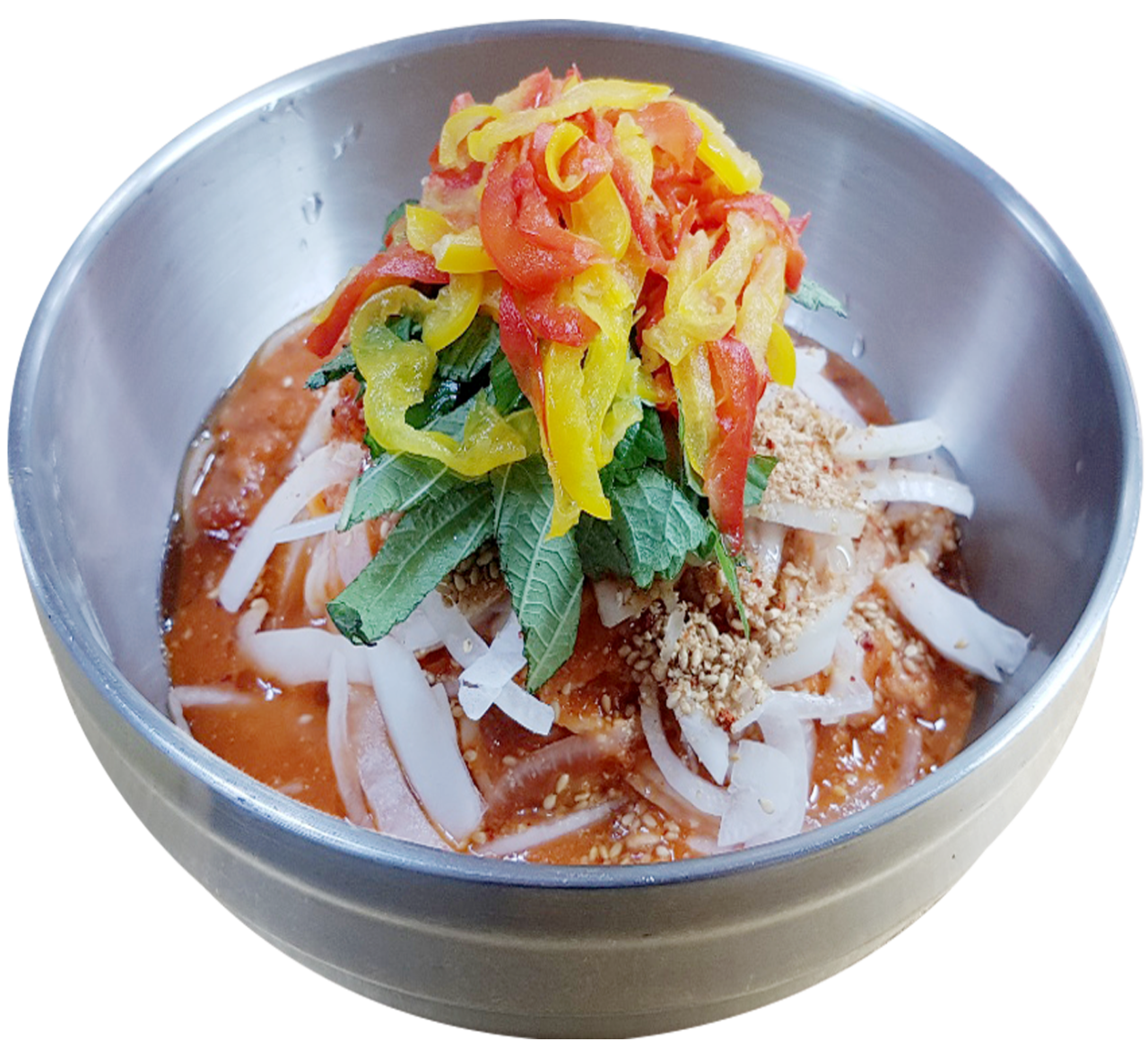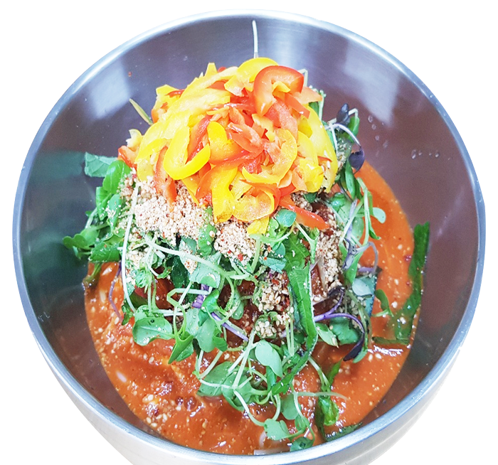 하지만 뭐니뭐니해도 이곳의 진짜 '명품'은 바로 '단호박비빔국수'예요. 이 메뉴는 사장님이 직접 개발해 특허까지 받았다고 하네요. 달달한 단호박에 영양 풍부한 파프리카와 해산물을 올리브유로 볶아 맛을 냈대요. 단호박의 달콤함과 파프리카, 올리브유의 향이 어우러져 풍미가 좋고, 항산화 성분과 비타민도 풍부해서 누구에게나 좋은 웰빙 음식이라고 해요.