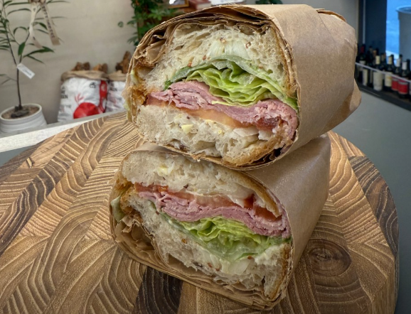 유기농 밀가루와 천일염, 엑스트라 버진 올리브 오일로 건강까지 생각하며 구워낸 고소하고 쫀득한 식감이 특징이에요. - 치아바타 샌드위치 (7,100원)