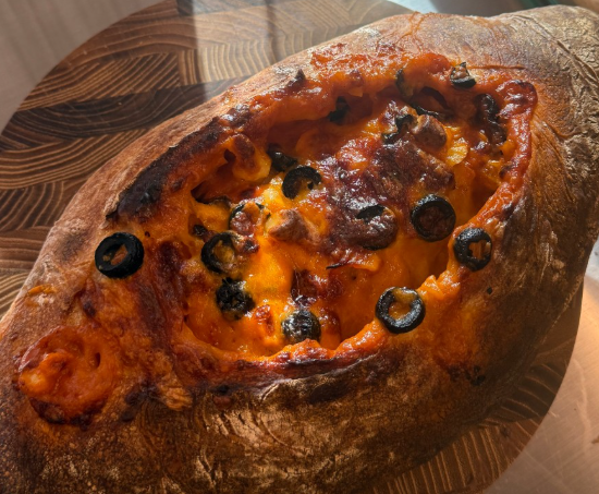 직접 만든 잠봉햄과 치즈가 듬뿍 들어간 사워도우 피자는 남녀노소 모두에게 인기가 많아요. - 바게트 (4,300원)