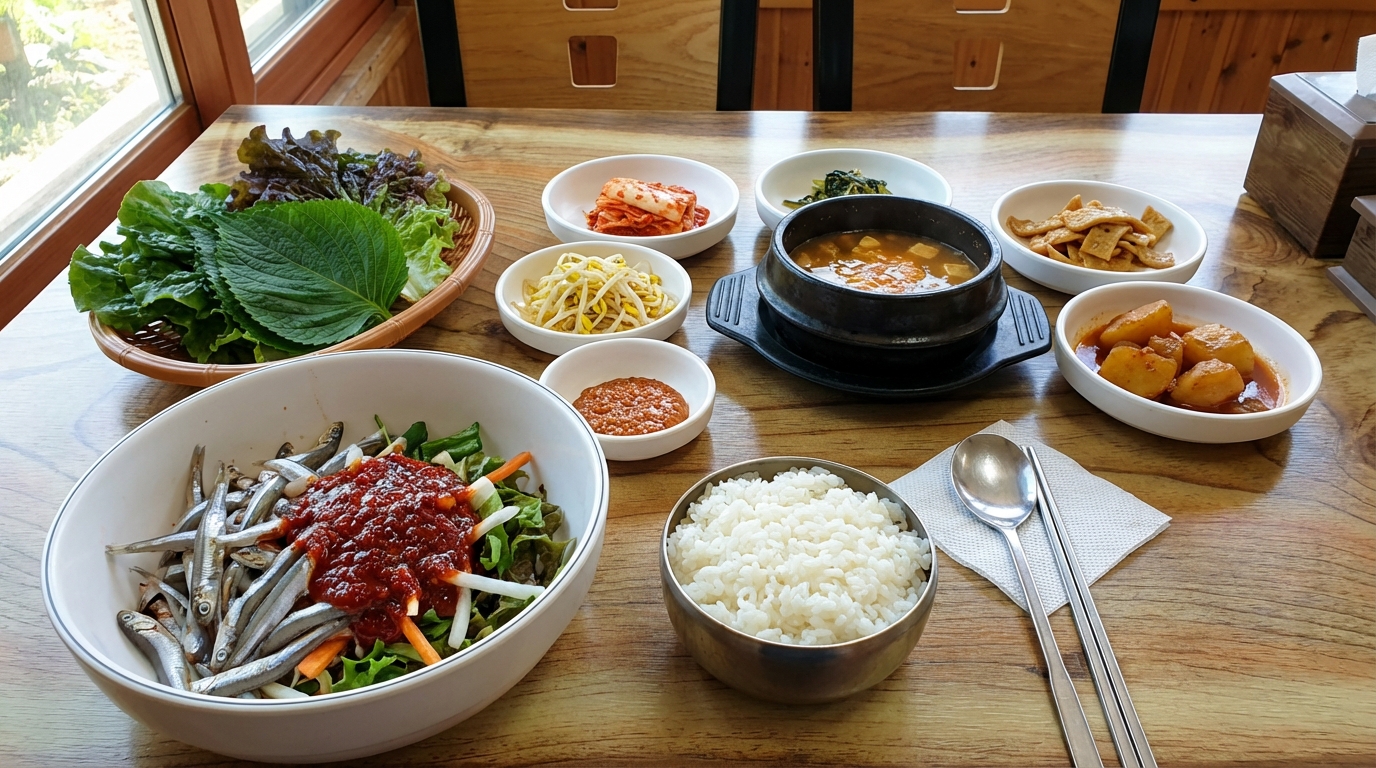 경상남도 남해군 삼동면에 위치한 이곳은 50년이 넘는 긴 세월 동안 한자리를 지켜온 터줏대감 같은 식당이에요. 80세 순심 할머니의 손끝에서 탄생하는 멸치쌈밥은 남해 바다의 신선함을 고스란히 담고 있어요. 가장 핵심적인 맛의 비결은 바로 500년 전통의 어로 방식인 '죽방렴'으로 잡은 멸치를 사용하는 점이에요. 죽방렴 멸치는 그물로 잡는 멸치와 달리 상처가 적고 육질이 단단해서 씹을수록 고소한 맛이 일품이에요.