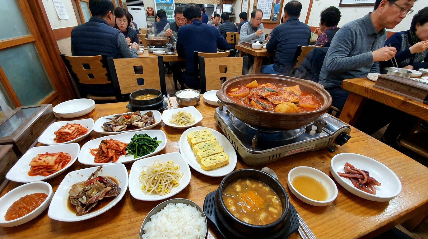 멸치 요리 외에도 갈치무침이나 갈치구이, 갈치찌개 같은 다양한 해산물 요리들이 준비되어 있어 선택의 폭이 넓어요. 남해 앞바다에서 건져 올린 은빛 갈치는 살이 통통하게 올라 있어 담백하면서도 깊은 맛을 내요. 특히 갈치무침은 멸치와는 또 다른 쫄깃한 식감과 풍부한 풍미를 제공하여 단체 방문객들이 빠지지 않고 주문하는 메뉴 중 하나예요. 모든 해산물 요리는 국내산 재료만을 고집하여 안심하고 건강하게 즐길 수 있다는 점이 큰 장점이에요.