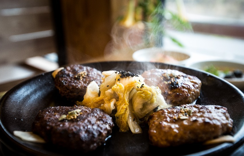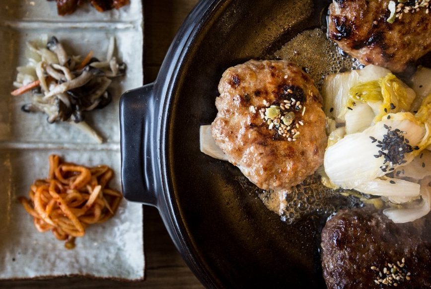 특히 양념한 고기를 공기층이 완전히 빠질 때까지 끈기 있게 치대주는 수작업이 식감의 핵심이에요. 이렇게 충분히 치댄 고기는 전기 오븐에서 속까지 고르게 익히는 초벌 과정을 거친 뒤, 2차로 참숯에 구워 은은한 불향을 입혀냈어요. 겉은 바삭하면서도 속은 육즙을 가득 머금고 있어 씹을 때마다 팡팡 터지는 고소한 맛이 일품이에요. 한우 떡갈비 한 점을 입에 넣으면 사르르 녹는 부드러운 식감 덕분에 남녀노소 누구나 만족스러운 식사를 즐길 수 있어요.