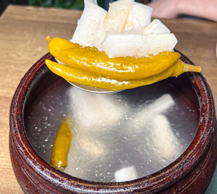겨울철에만 한정 출시하는 특별 메뉴로, 겨울 냉이와 국내산 돼지고기가 어우러진 얼큰갈비찌개가 있습니다. 국물 맛이 깊고 깔끔하며, 추운 날씨에 몸과 마음을 따뜻하게 녹여주는 인기가 높은 찌개 메뉴입니다. 참고로 찌개를 드신 후에는 볶음밥 주문이 불가능해요.