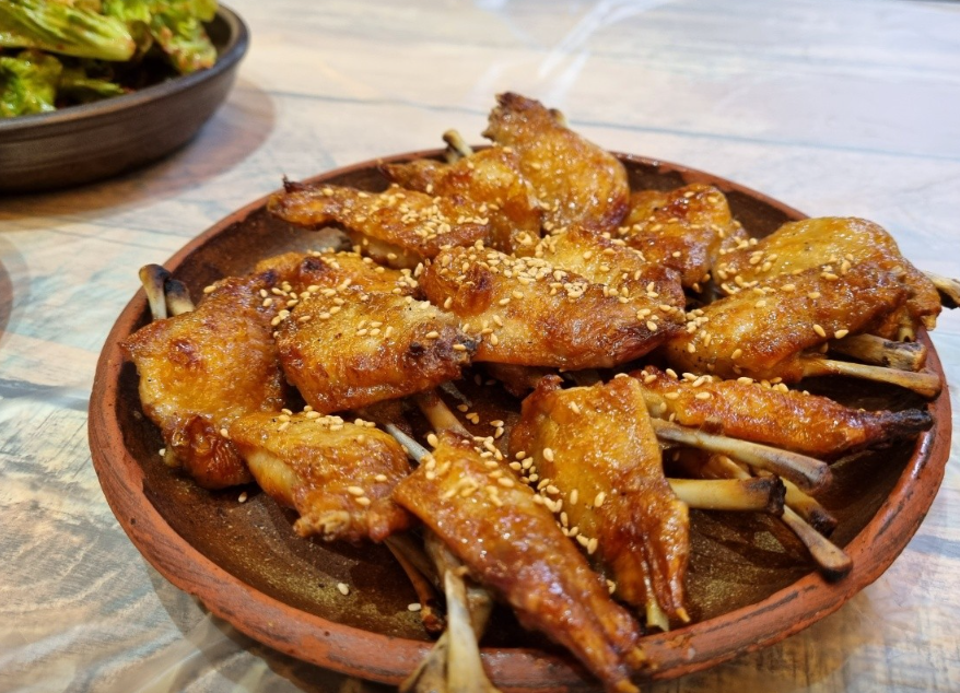 누룽지 백숙만큼 인기 있는 메뉴가 바로 청송식 닭불고기예요. 다진 닭가슴살을 사용해 담백하면서도 풍미가 진하고, 15가지 양념에 2~3일간 숙성시켜 깊은 맛을 낸답니다. 이렇게 숙성된 닭고기를 석쇠에 구워내면 매콤달콤한 향이 퍼져 입맛을 돋워요. 숯불 향까지 어우러져 고기 본연의 맛이 살아 있으며, 단체 손님들에게도 인기가 높은 메뉴예요. 특히 닭백숙과 함께 주문해 먹으면 맛의 조화가 아주 좋아요.