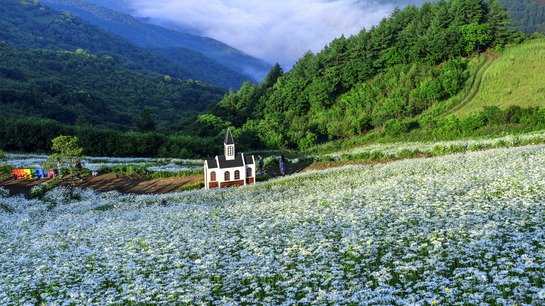 육백마지기의 넓은 평원에 위치한 샤스타데이지 군락은 전국에서도 보기 드문 규모를 자랑해요. 수많은 데이지 꽃과 함께 사진을 찍거나 아름다운 풍경을 감상하다 보면 시간 가는 줄 모른답니다.