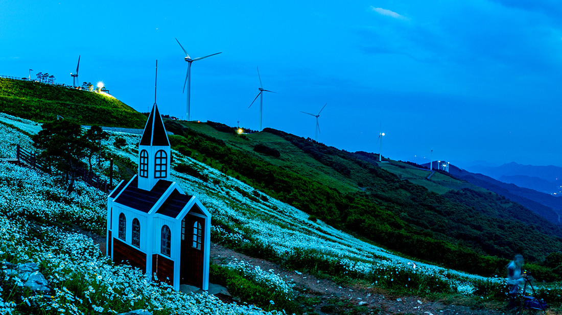 특히 이곳은 강원도의 청정 자연과 풍력발전기가 어우러져 이색적인 풍경을 만들어내는 것으로 유명해요. 초록빛 자연과 푸른 하늘, 그리고 끝없이 펼쳐진 샤스타데이지의 하얀 물결은 그야말로 장관을 이룹니다. 한적하게 자연을 즐기고 싶은 분들이나 차박 캠핑을 즐기는 분들에게도 인기 있는 여행지랍니다.