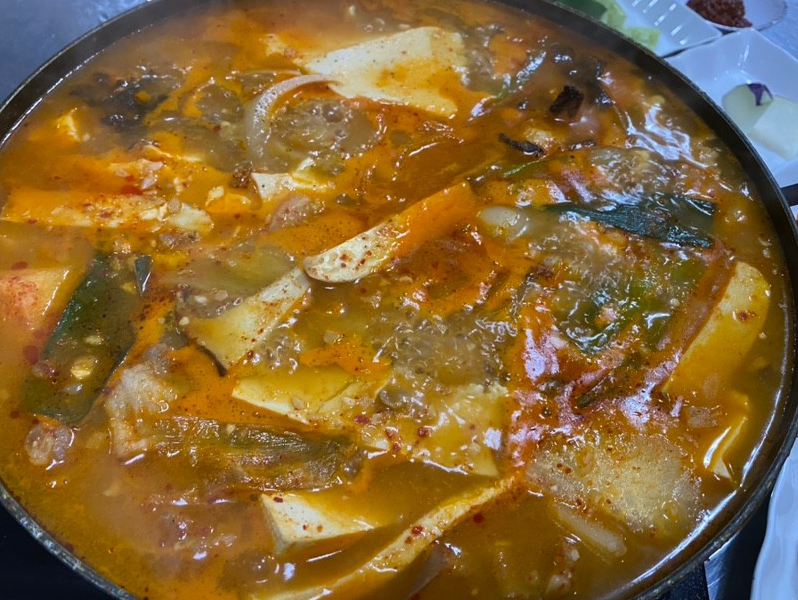 울대찌개 외에도 옥산김치찌개 역시 꾸준히 사랑받는 메뉴예요. 깊게 익은 김치와 돼지고기가 어우러져 누구나 좋아할 만한 맛을 내요. 무엇보다 산남동울대집만의 특별한 점은 바로 즉석 냄비밥이에요. 손님이 미리 전화하면 직접 지어내는 냄비밥을 제공하는데, 따끈한 밥 향과 윤기가 살아 있어 어떤 메뉴와도 잘 어울려요. 이런 정성이 더해져 손님 만족도가 높다는 평가를 받고 있어요.