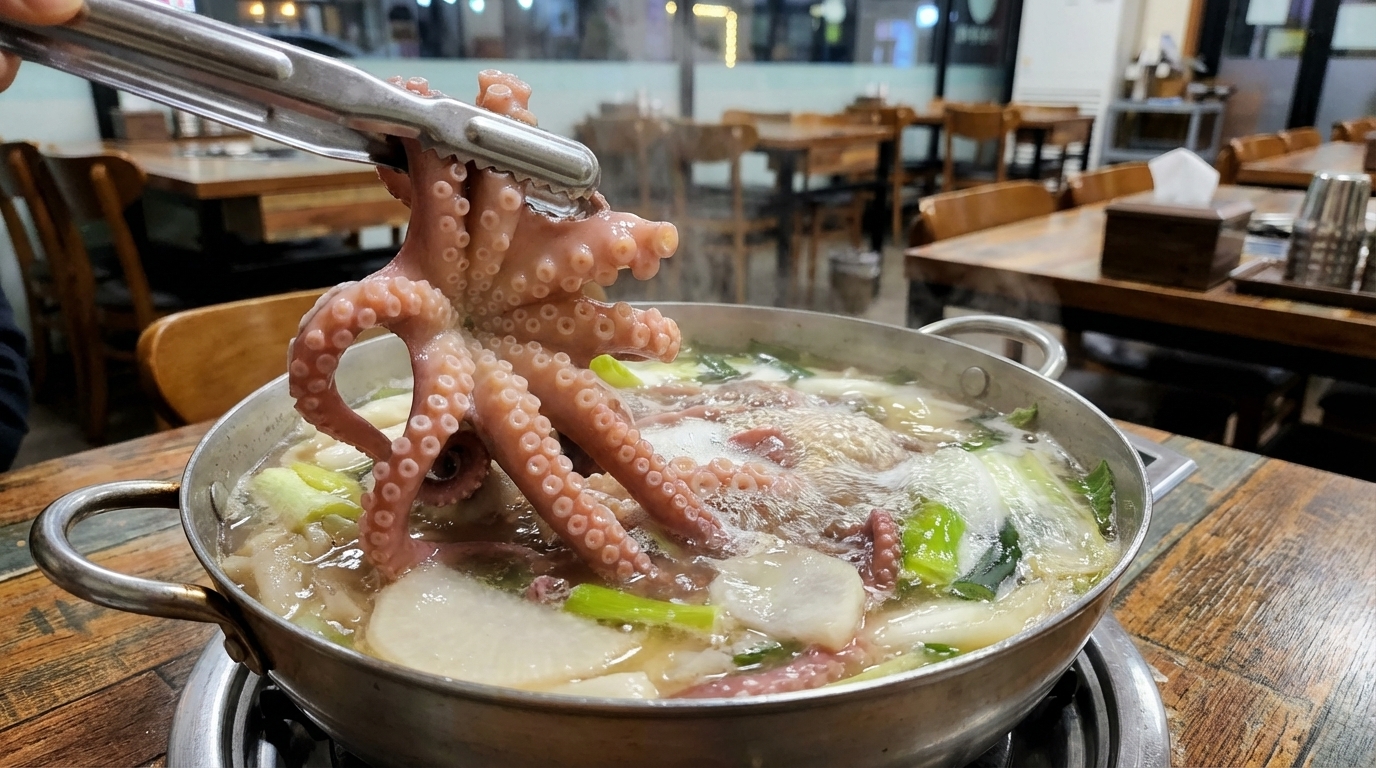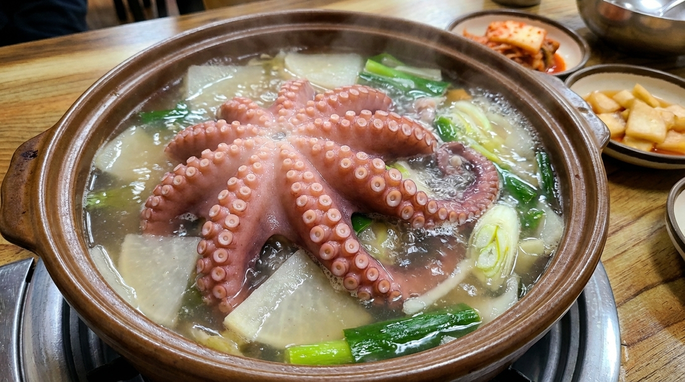 대전에 위치한 이 식당은 박속낙지탕이라는 독특한 메뉴로 많은 단골을 보유하고 있어요. 보통 낙지탕이라고 하면 붉은 양념을 생각하기 쉽지만, 이곳은 박의 속살을 듬뿍 넣어 맑고 투명하게 끓여내는 것이 특징이에요. 박속은 예로부터 소화를 돕고 몸의 열을 내리는 데 효과가 있다고 알려져 있어 건강식으로도 손색이 없어요.