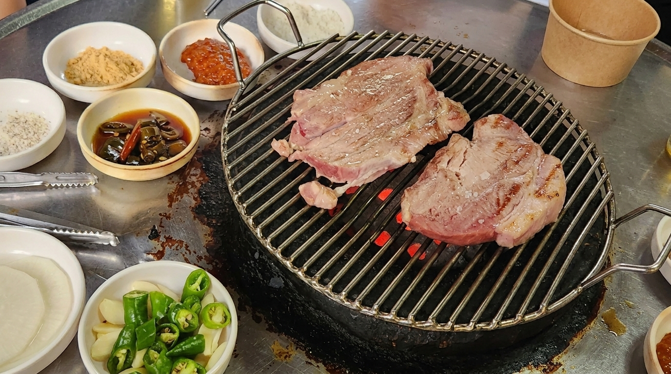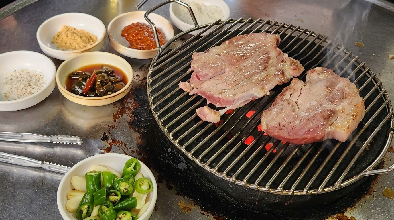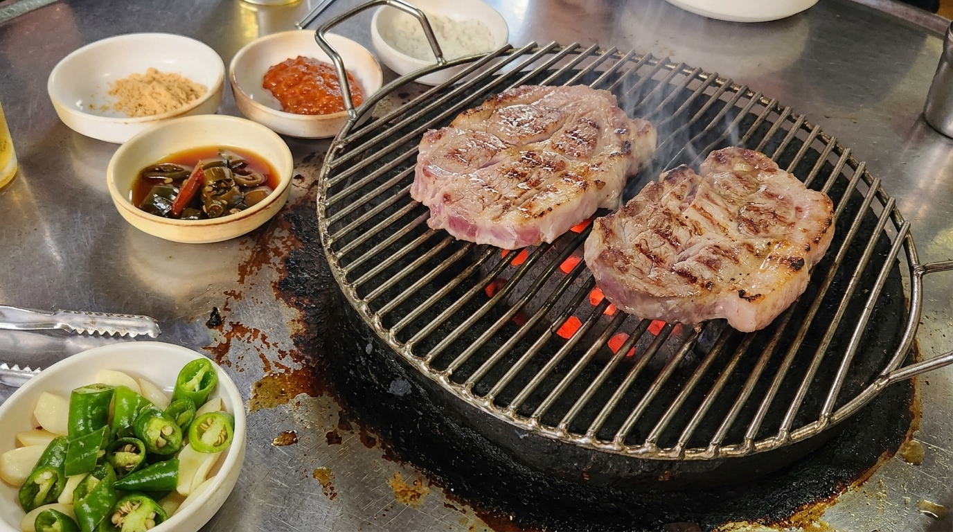 이곳의 대표 메뉴인 소금구이는 두툼하게 썰어낸 고기에 소금을 툭툭 뿌려 연탄불에 굽는 방식이에요. 불향이 고기 속까지 깊게 배어들어 한 입 베어 물면 터지는 육즙이 일품이랍니다. 특히 전현무와 멤버들이 극찬한 돼지갈비는 인위적인 단맛이 아니라 은은한 양념의 감칠맛이 살아있어서 질리지 않고 계속 먹게 되는 마력이 있어요.