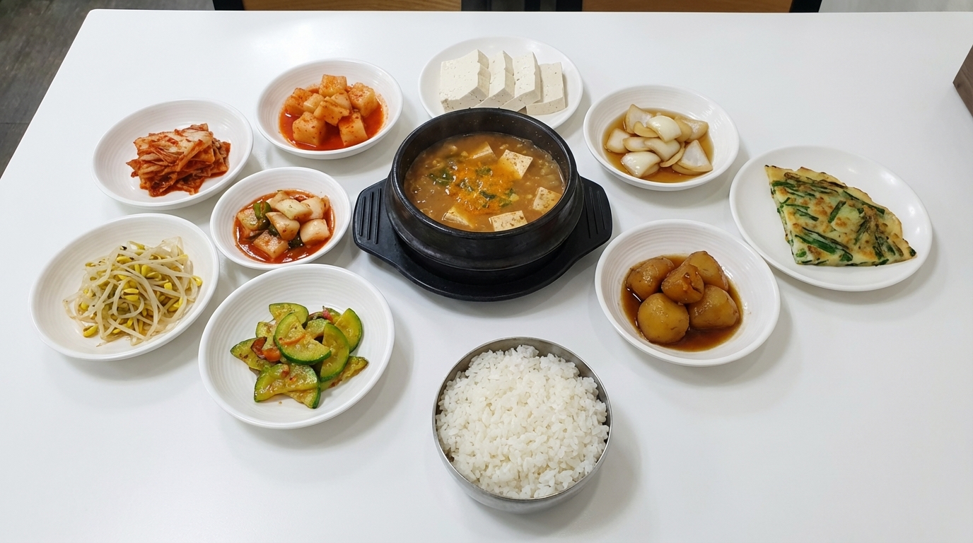 용인의 아들들답게 로컬의 숨은 보석 같은 곳을 정확히 짚어냈다는 평가를 받고 있어요. 이곳 상차림의 핵심은 메인 메뉴인 청국장도 훌륭하지만 10여 가지가 넘는 정갈한 밑반찬에 있어요. 집에서 만들기 번거로운 각종 산나물 무침과 장아찌류가 식탁을 가득 채워 영양 균형을 맞춰줘요. 조미료 사용을 최소화하여 식사 후에도 속이 편안하고 개운한 것이 특징이에요.