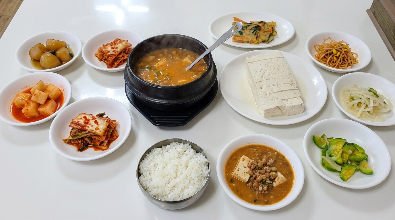 전통적인 방식 그대로 가마솥에 콩을 삶아 정성스럽게 발효시키는 과정을 거치기 때문에 깊이감이 남달라요. 함께 나오는 밑반찬들 역시 제철 나물과 직접 담근 김치로 구성되어 할머니가 차려주신 집밥 같은 느낌을 주거든요. 성재와 은광처럼 용인에서 나고 자란 이들이 자신 있게 추천할 만큼 신뢰도가 높은 식당이에요. 청국장 외에도 두부찌개와 비지찌개 같은 콩 요리 라인업이 탄탄해서 취향에 맞게 선택할 수 있어요.