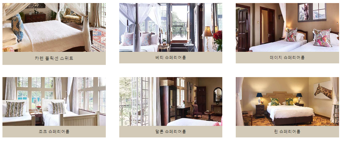 1932년에 지어진 원래의 저택은 1930년대의 아름다운 특징과 매력을 유지하며 열정적으로 인테리어를 리모델링하여 아르데코 욕실과 앤티크 가구는 저택의 화려함을 만들었다는데요 2011년에는 옆에 The Garden Manor이 새로 추가되었는데, 이곳은 원래 저택의 시대적 분위기를 재현하며 Garden Manor에는 Salma, Edd, Arlene, Helen, Kelly 및 Finch Hatton Suite 등 6개의 객실이 있다고 합니다.